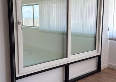 Ventana con hojas deslizantes que corren a través de un marco permitiendo crear varias combinaciones de diseño.